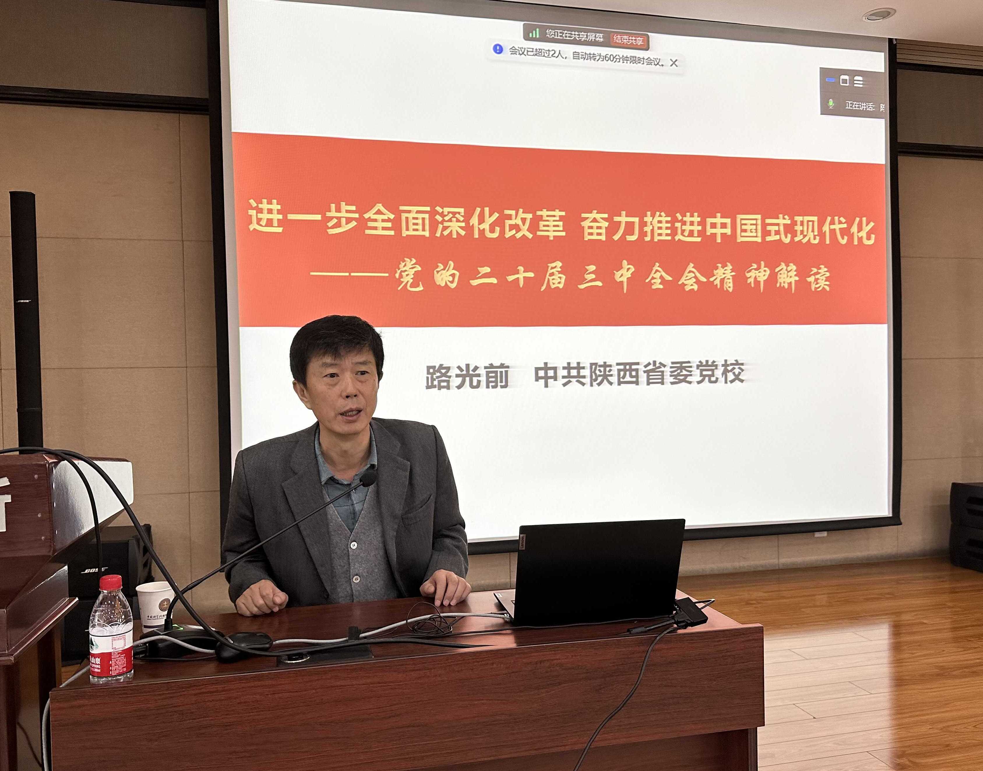 ????10月24日,中國科學院地球環境研究所黨委舉辦黨的二十屆三中全會精神專題輔導報告會,邀請中共陜西省委黨校副校長路光前作專題輔導報告。報告會以線上線下相結合的方式舉行,研究所全體黨員、民主黨派人士參加。黨委書記、所長孫有斌主持報告會。